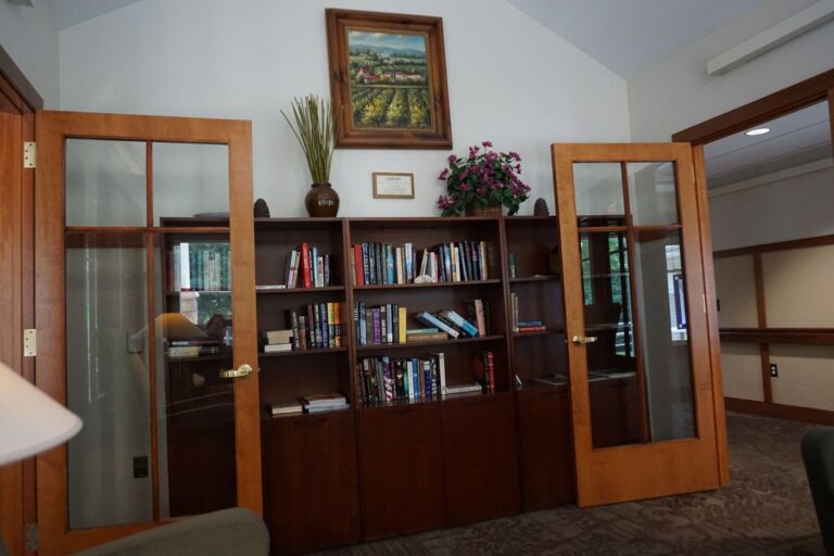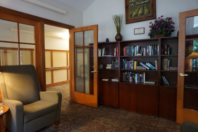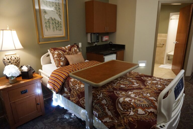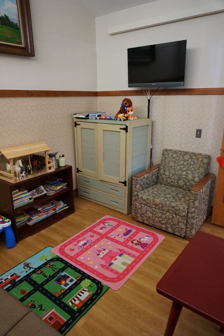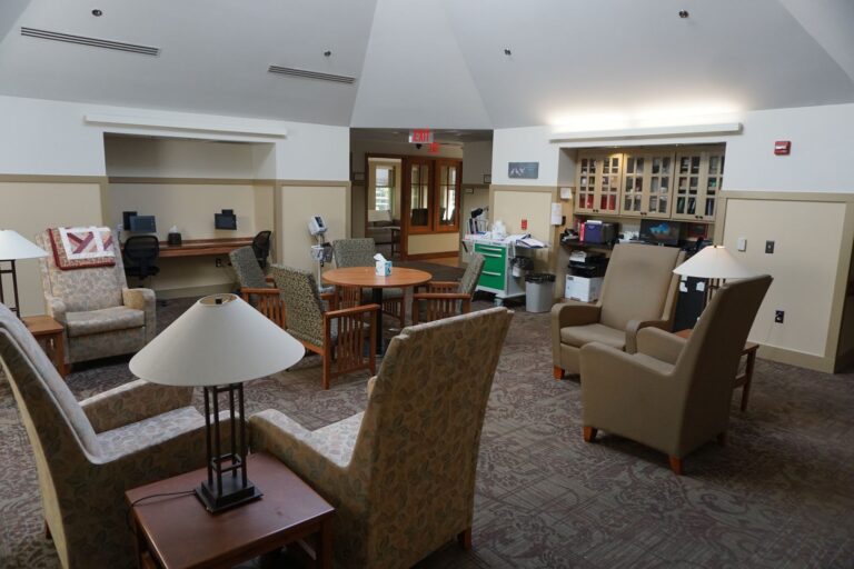 Peggy’s House has multiple common areas for both patients and families to enjoy, including: a large main atrium, common areas in each of the three wings, living rooms in each wing, a chapel, dining room, library, children’s play room, salon and multiple outdoor patios and sitting areas.